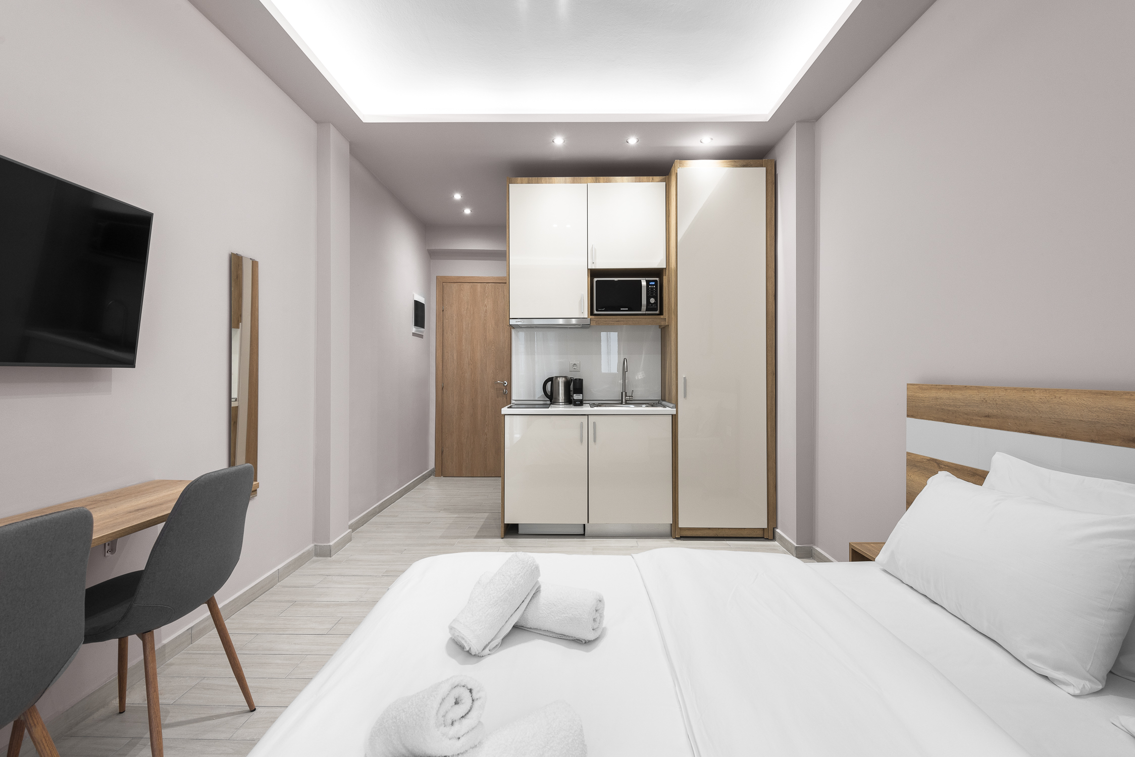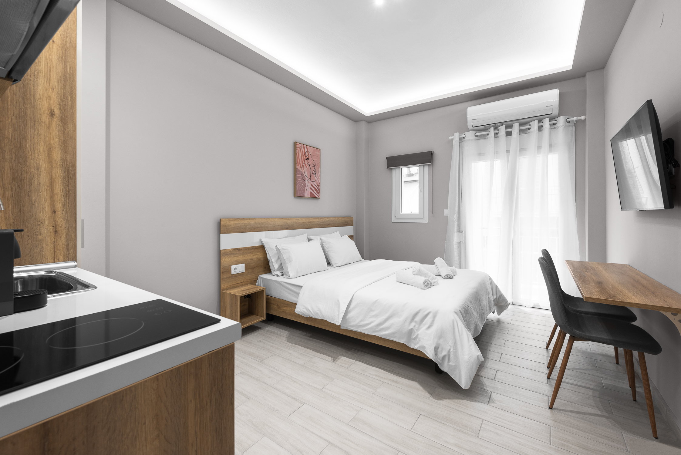 Αυτά τα διαμερίσματα έχουν σχεδιαστεί για να σας βοηθήσουν να δημιουργήσετε αναμνήσεις στην πανέμορφη Θεσσαλονίκη. Οι λευκοί και οι παστέλ τόνοι συμβάλλουν στο να πάρετε μια ανάσα από τους πολυσύχναστους δρόμους της Θεσσαλονίκης. Τα διαμερίσματα βρίσκονται στο κέντρο της πόλης όπου βρίσκονται οι πιο premium μπουτίκ και εστιατόρια.